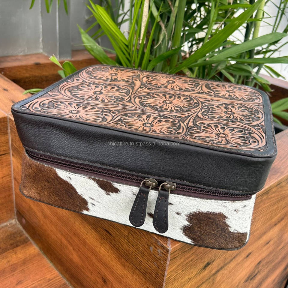 Custom Branded Portable Earrings Ring Case Cow Hide Leather Jewelry Organizer Storage Case Gift Boxes Large Travel Jewelry Boxes