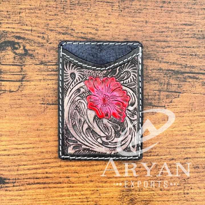 Custom Branded Tooled Leather Credit Card Holders Pink Floral Card Case Western Genuine Leather Pocket Wallet Gift for Him & Her