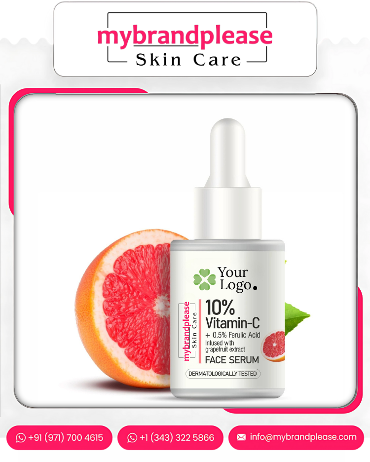 Custom Branded Vitamin C Ferulic Acid Face Serum with Grapefruit Infusion Private Label Manufacturing for Lips and Body Care