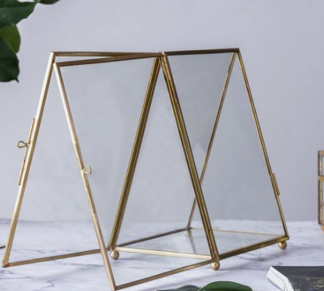 Custom Brass Hanging Metal Glass Frame Decorative Living Room Bathroom Hanging Wall Canvas Picture Photo Glass Frame