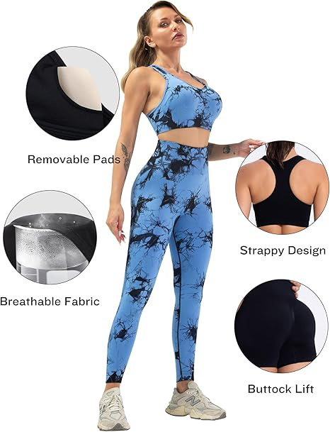 Custom Breathable Activewear Set Widen Tie Die, Sublimation Women's Sportswear Workout Active Sets for Women Gym Wear Women Sets
