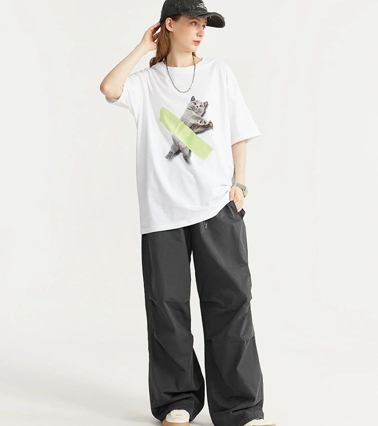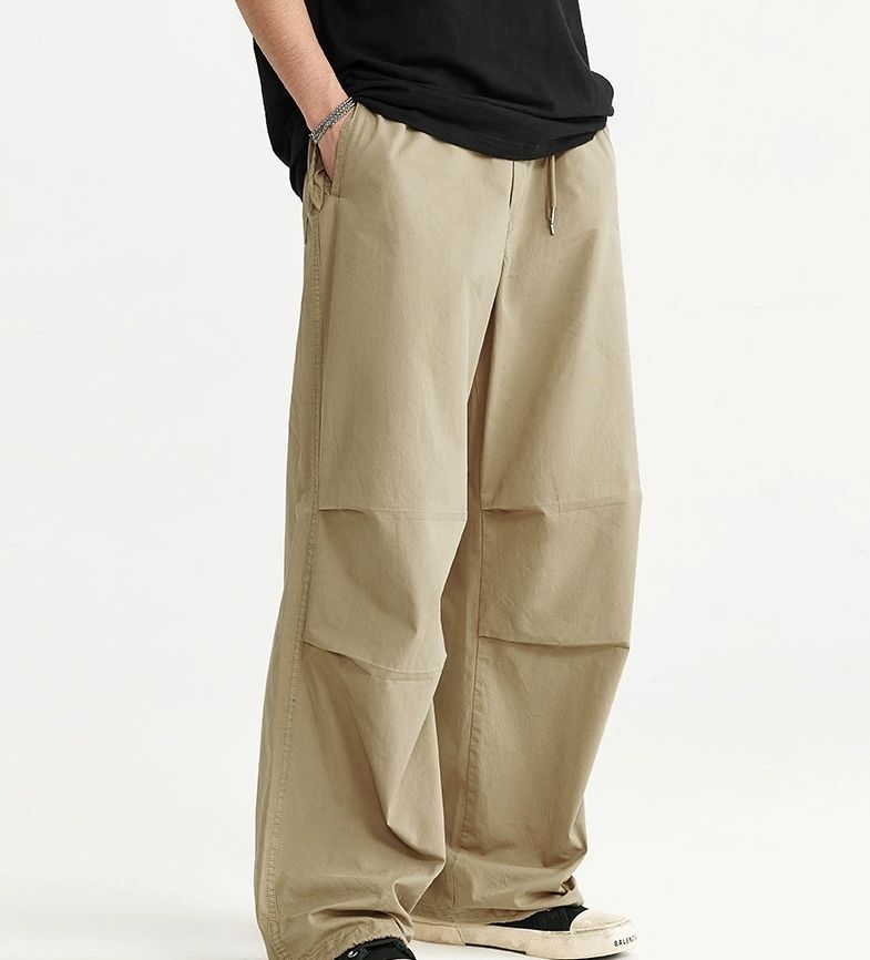 Custom Breathable Cotton Pants Summer Casual Flat Front Parachute Baggy Cargo Trousers for Men