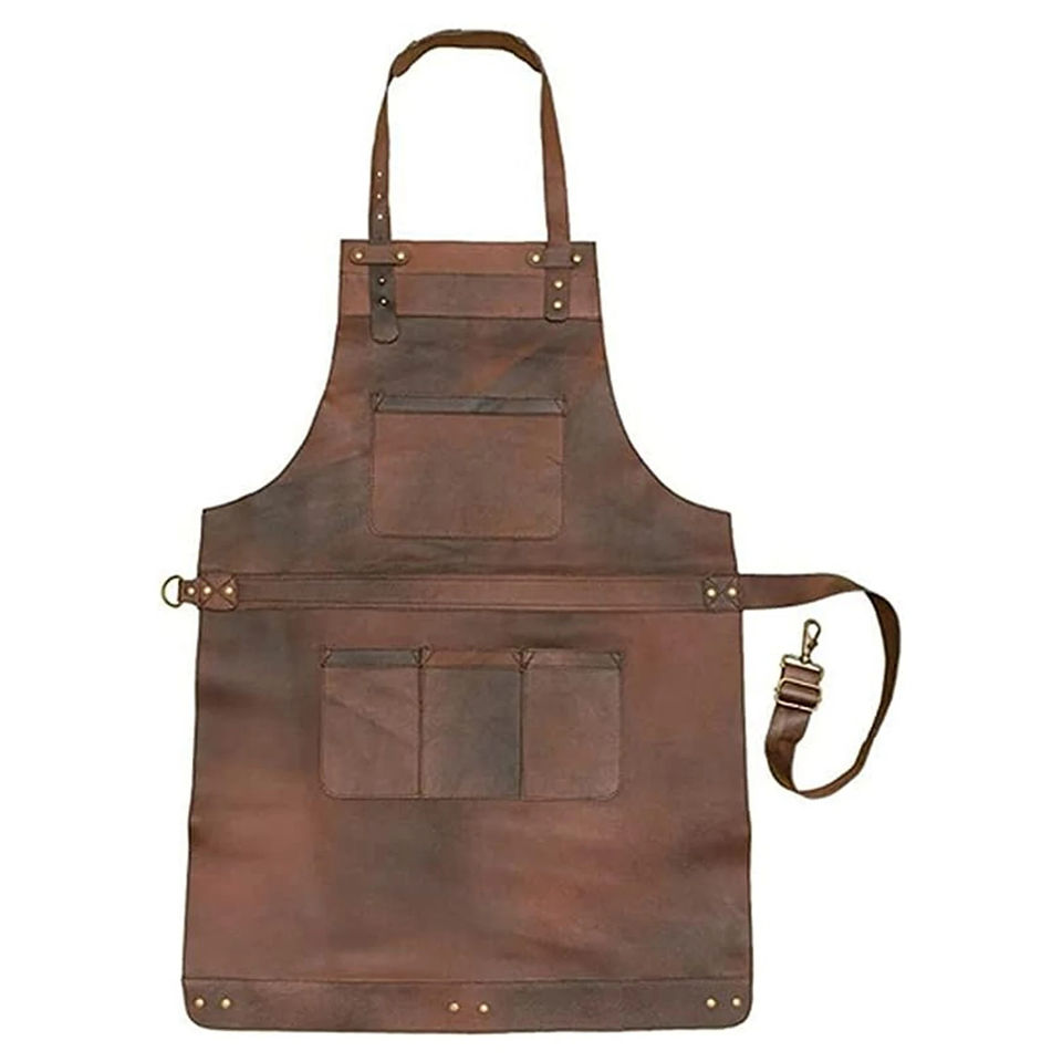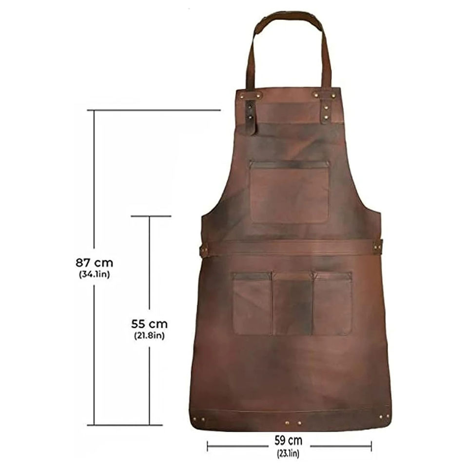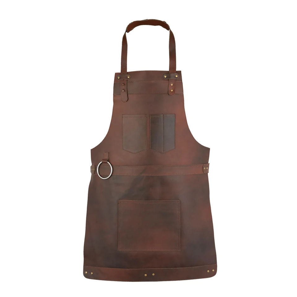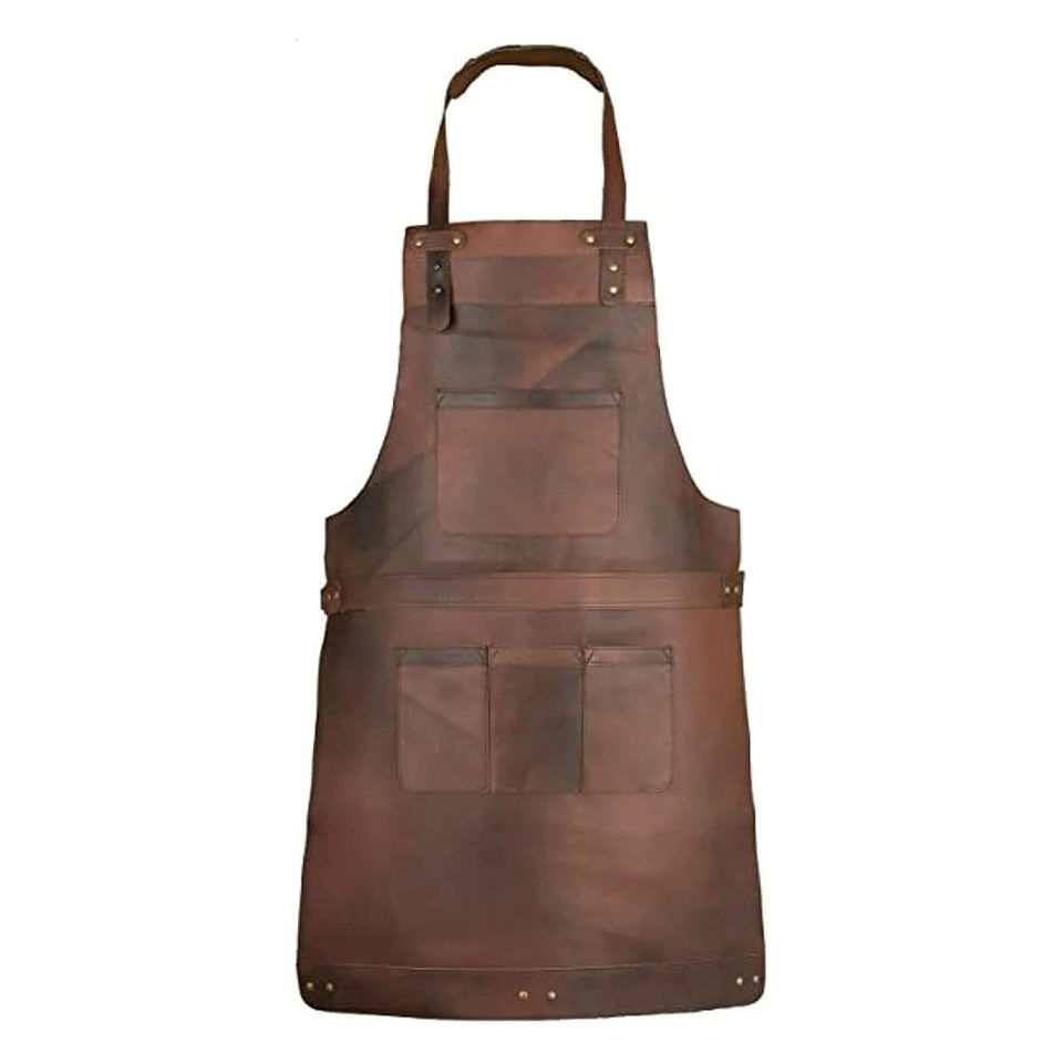 Custom Brown Genuine Leather Aprons for Men Professional Kitchen Cooking Wholesale 100% Leather Apron