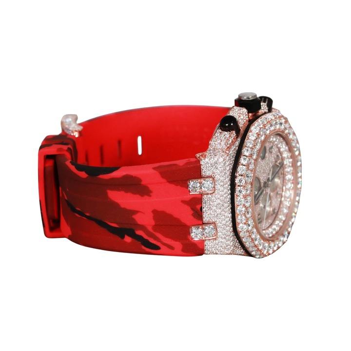 Custom Brown Rubber/Silicone Skeleton Watch Flawless Moissanite Diamond Quartz Movement Glass Dial Stylish Mens Fashion