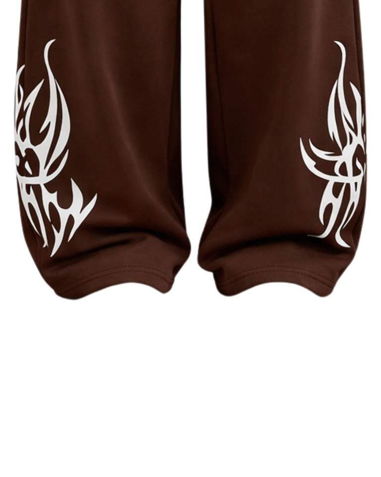 Custom Brown Tribal Print Baggy Sweatpants Women Streetwear Wide Leg Jogger Pants Oversized Hip Hop Casual Fleece Trousers