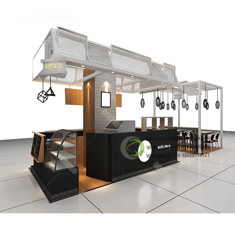 Custom Bubble Tea Kiosk Elegant Design Bubble Tea Waffle Kiosk Used in Mall With Topping Bar