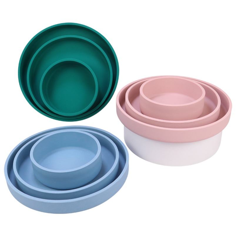 Custom Bulk 3 PCS Cat Feeding Bowl Set Silicone Anti-Slip Round Pet Cat Dog Plate Food Containers Suitable for Dry and Wet Food