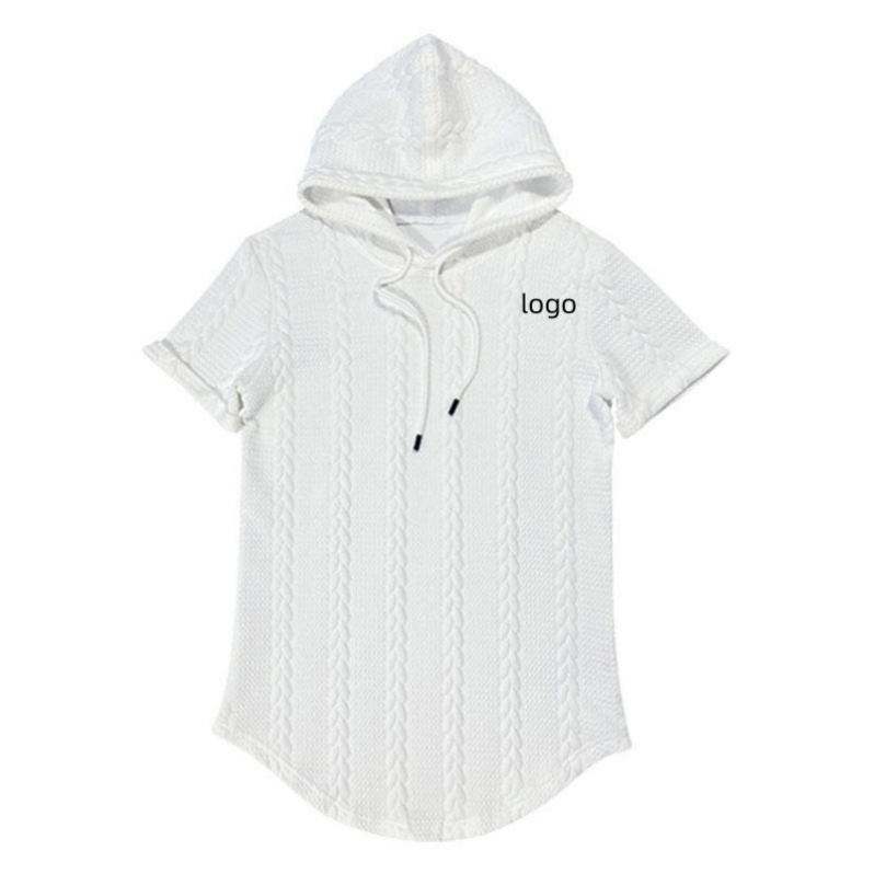 Custom Bulk High Quality French Terry Loose Drop Shoulder Street Wear One Pocket Drawstring Loose Short Sleeve Hoodie Men