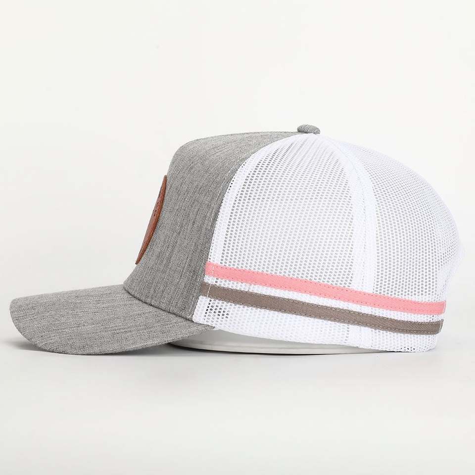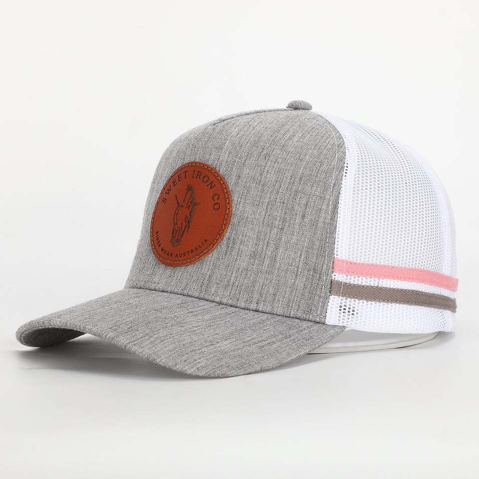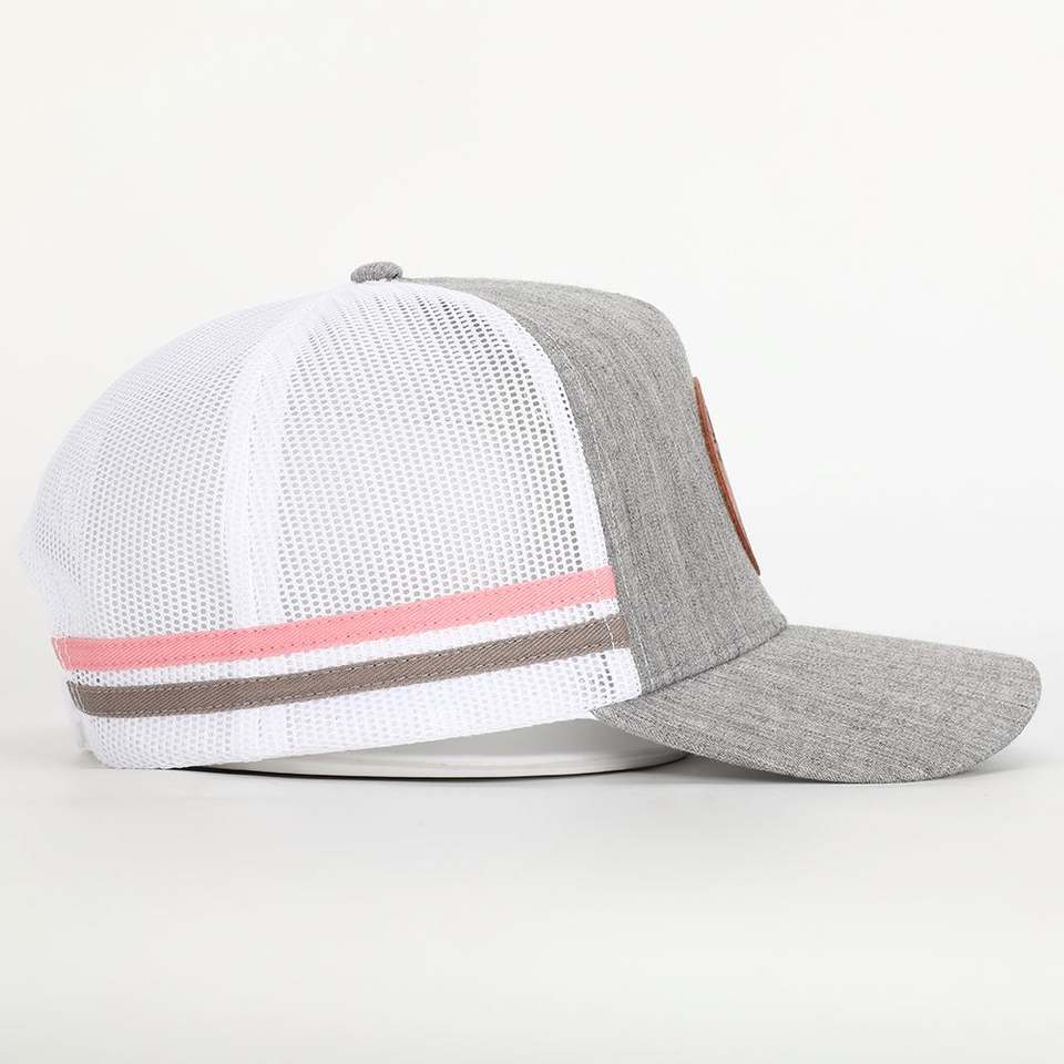 Custom Bulk Quality High Profile Structure Crown 5 Panel Australia Country 2 Side Stripe Trucker Cap Hat With Leather Patch Logo