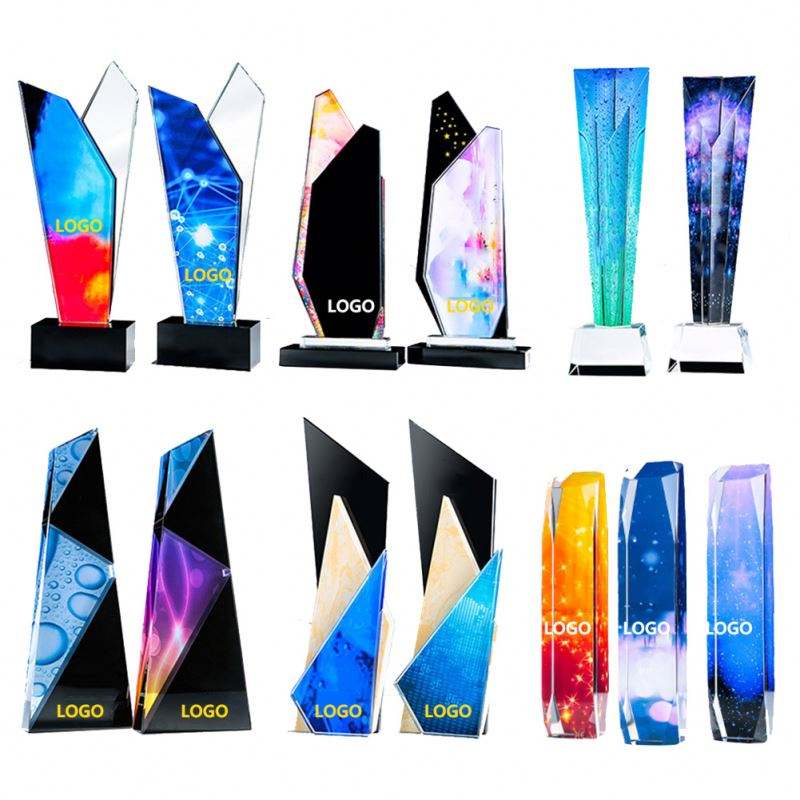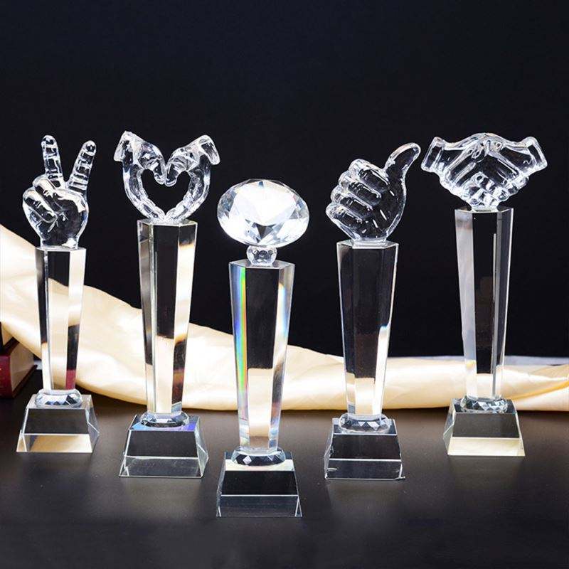 Custom Business Gift Solid Momentoes Metal Crystal Glass Acrylic Award Trophy Blank Plaque Wooden Base Crystal Trophy Cup