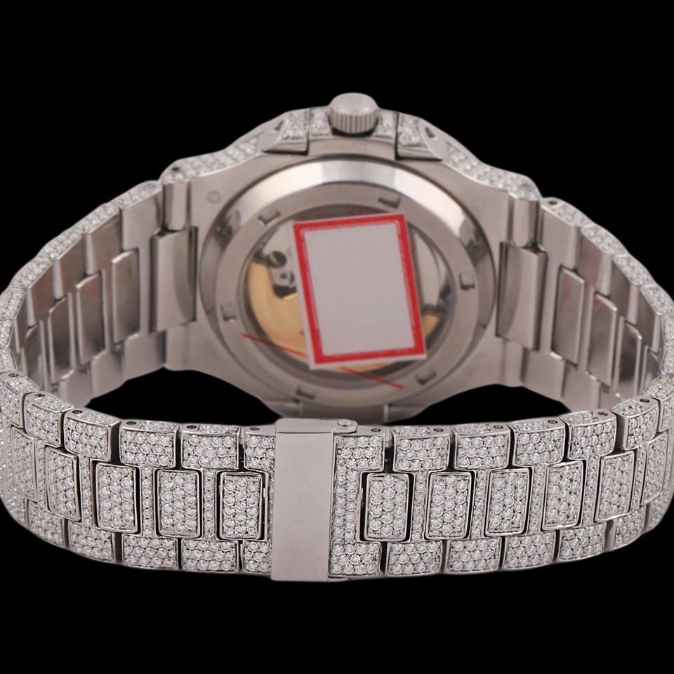 Custom Business Iced Out Sky Blue Dial Only Bezel Moissanite Round Diamond Classic Date and Features White Gold Mechanical Watch