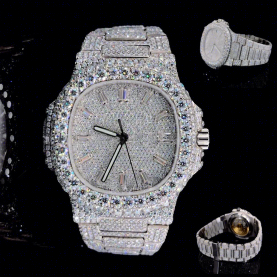 Custom Business Sport Watch Stainless Steel Hip-Hop VVS Moissanite Crystal Dial Iced-Out Automatic Mechanical Watch for Men