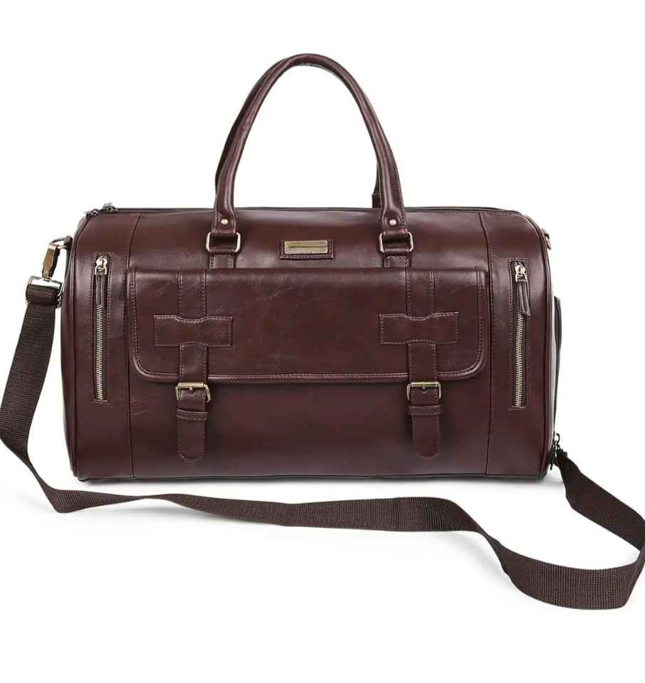Custom Business Travel Handbag Vintage Style Real Leather Lightweight with Zip Closure for Office Use