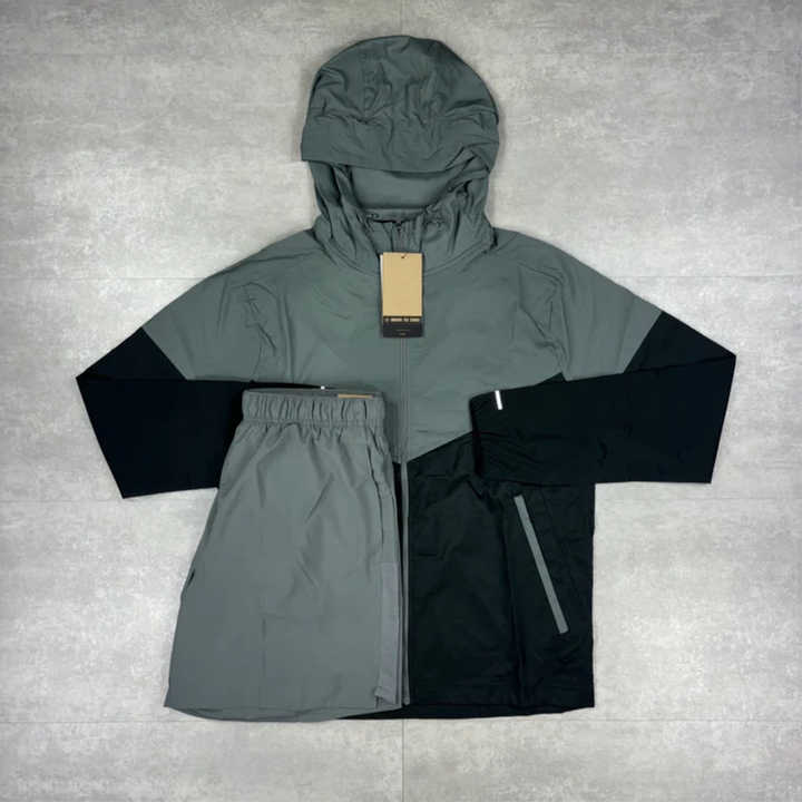 Custom Button-Up Men's 2-Piece Set Zip-Up Hooded Nylon Jacket Shorts Windbreaker Tracksuit Winter Streetwear Unisex Breathable