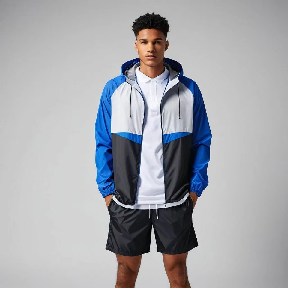 Custom Buttons Polyester Nylon 2 Piece Set Shorts Jogging Suit Men T Shirts Short Set Tracksuit for Men Custom Windbreaker Set