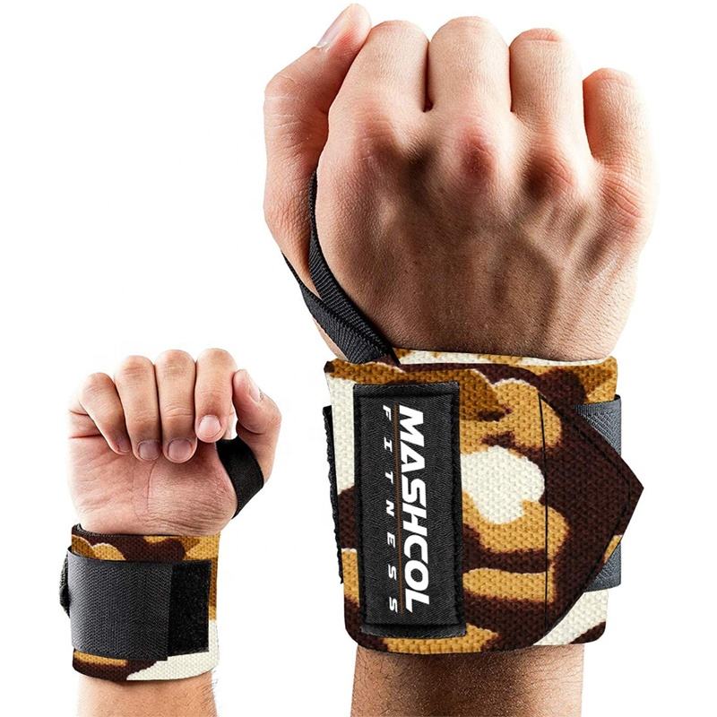 Custom Camo Print 18\" Fitness Wrist Wraps Breathable Elastic Gym Workout for Crossfit Gloves with Thumb Loop