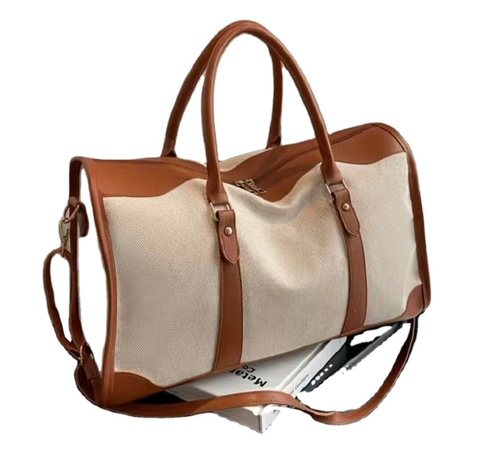 Custom Canvas and Leather Travel Luggage Bag, Travel Weekend Bag Large Capacity Vintage Luggage Genuine Leather Bags