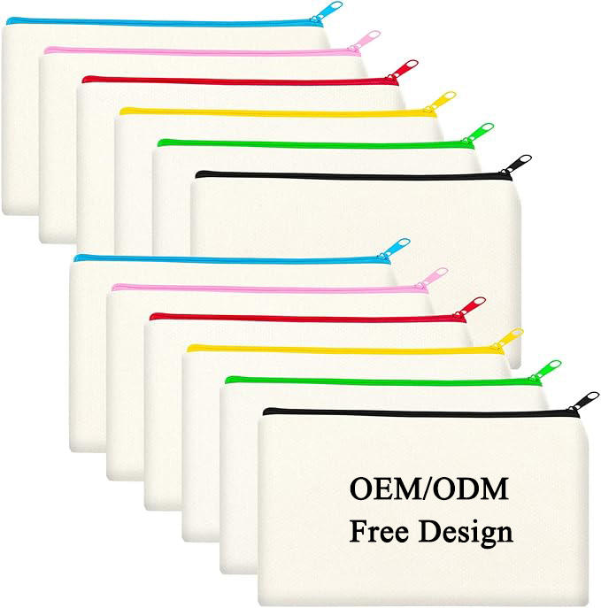 Custom Canvas Bag Zipper Pouch Makeup Bags Bulk Canvas Pencil Pouch with Sturdy Zipper Cosmetic Bag Travel Toiletry Bag