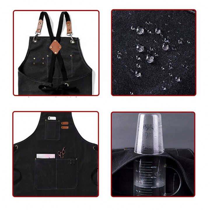 Custom Canvas Work Aprons BBQ Kitchen Cooking Safety Heavy Duty Woodworking Grill Gardening Apron for Men and Women With Pockets