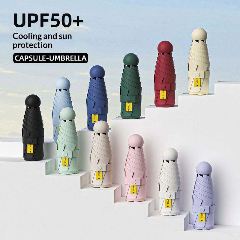 Custom Capsule Umbrella Compact Automatic Sun Rain Umbrella UPF50+ UV Protection Nylon Material UV Printing Wholesale Orders