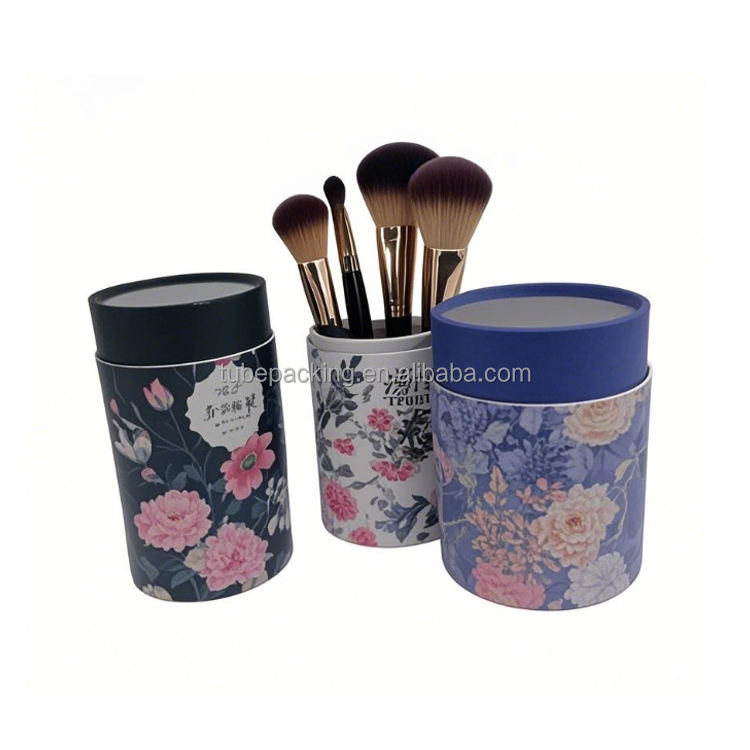 Custom Cardboard Paper Package Cylinder Tube Makeup Pr Brush Gift Packaging Box for Cosmetic Brushes Tools