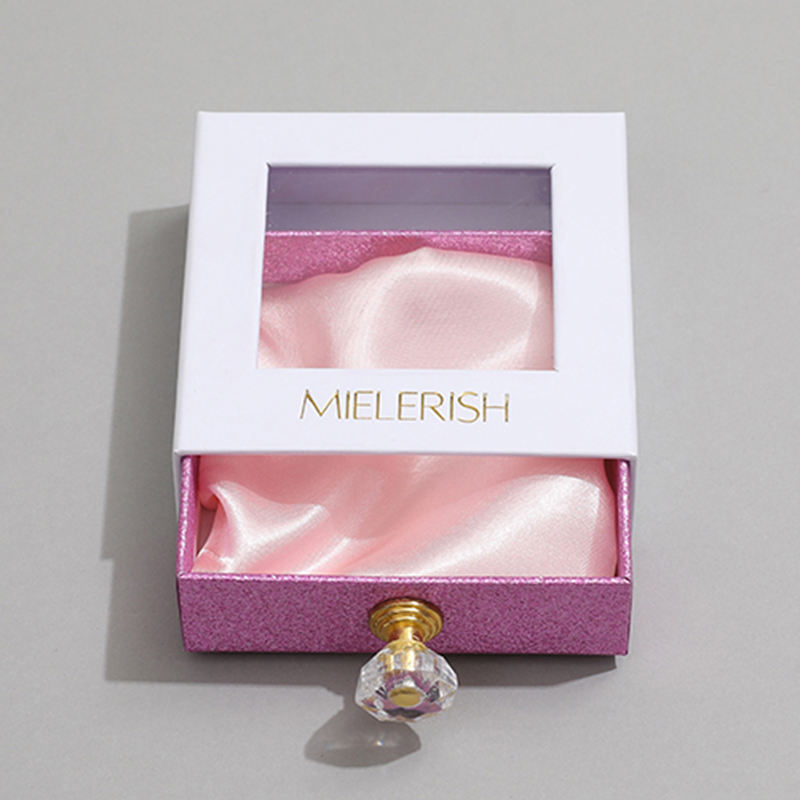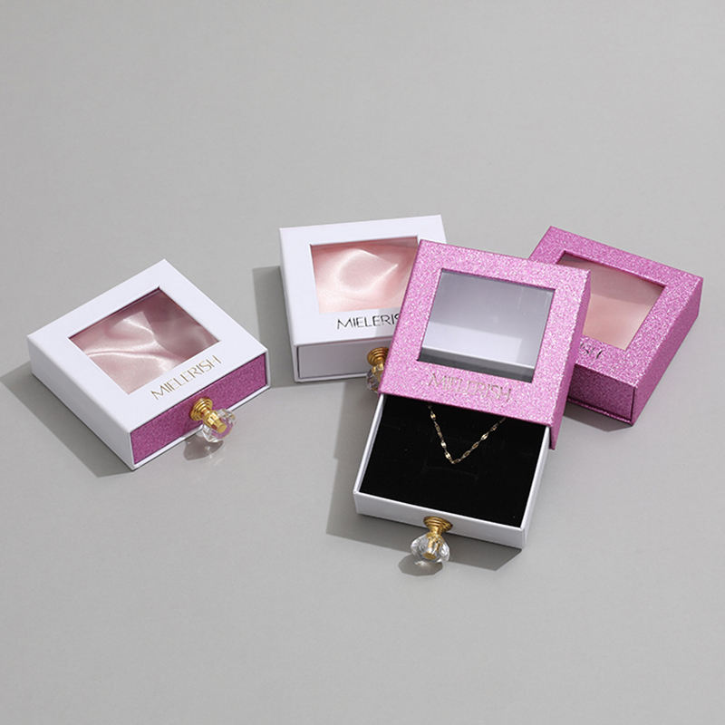 Custom Cardboard Small Rigid Cardboard Paper Sliding Drawer Gift Box with clear PVC Window Jewelry Packaging Gift Box