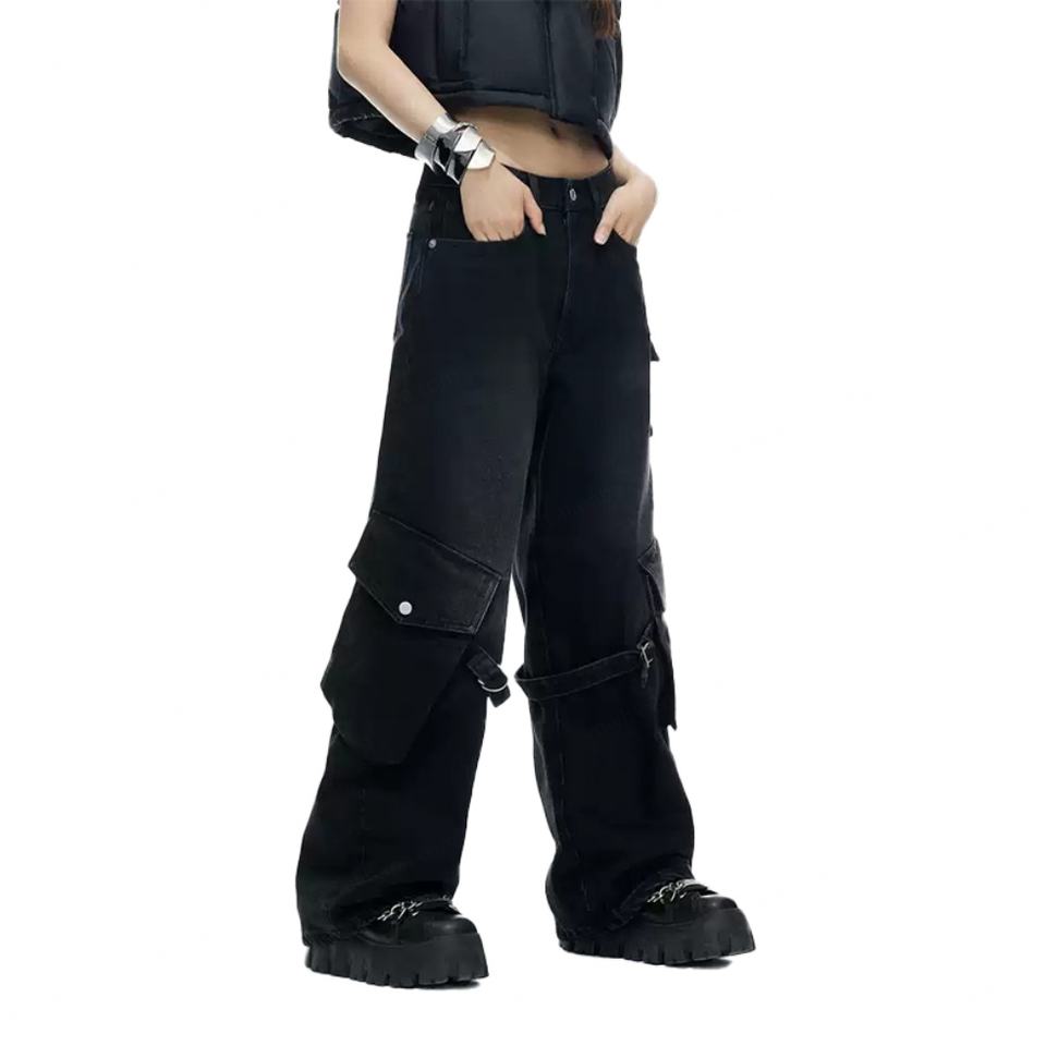 Custom Cargo Jeans for Women Washed Denim 100% Cotton Vintage Distress Baggy Pants Trousers Fashion Casual Women's Jeans
