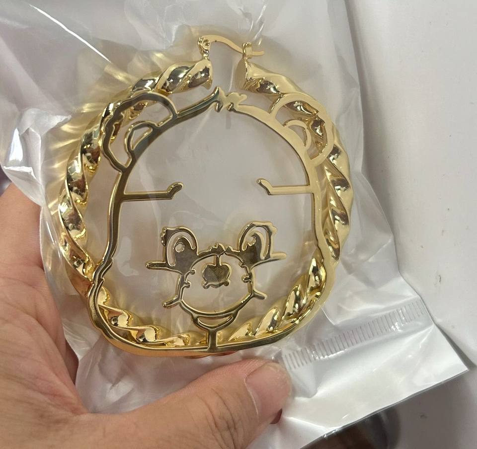 Custom Cartoon Character Bamboo Hoop Earrings Women Trendy Stainless Steel Twist 18K Gold Plated Party Custom Name Dropshipping