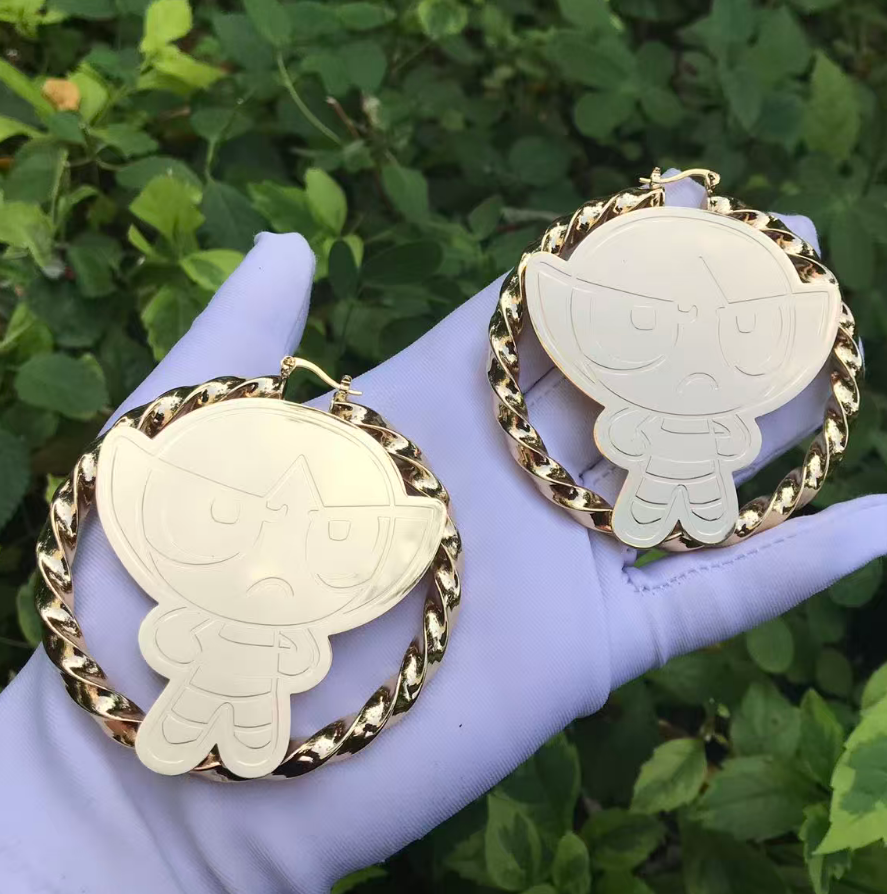 Custom Cartoon Character 18K Gold Plated Stainless Steel Twist Earrings for Women Trendy Bamboo Hoop Party Dropshipping