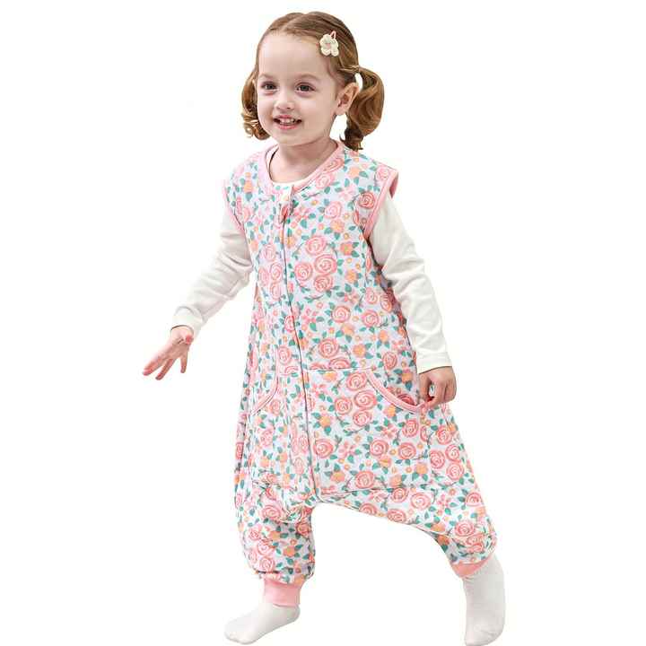 Custom Cartoon Pattern Cotton Kids' Double Layer Sleeping Bag Color Split Leg Baby Romper