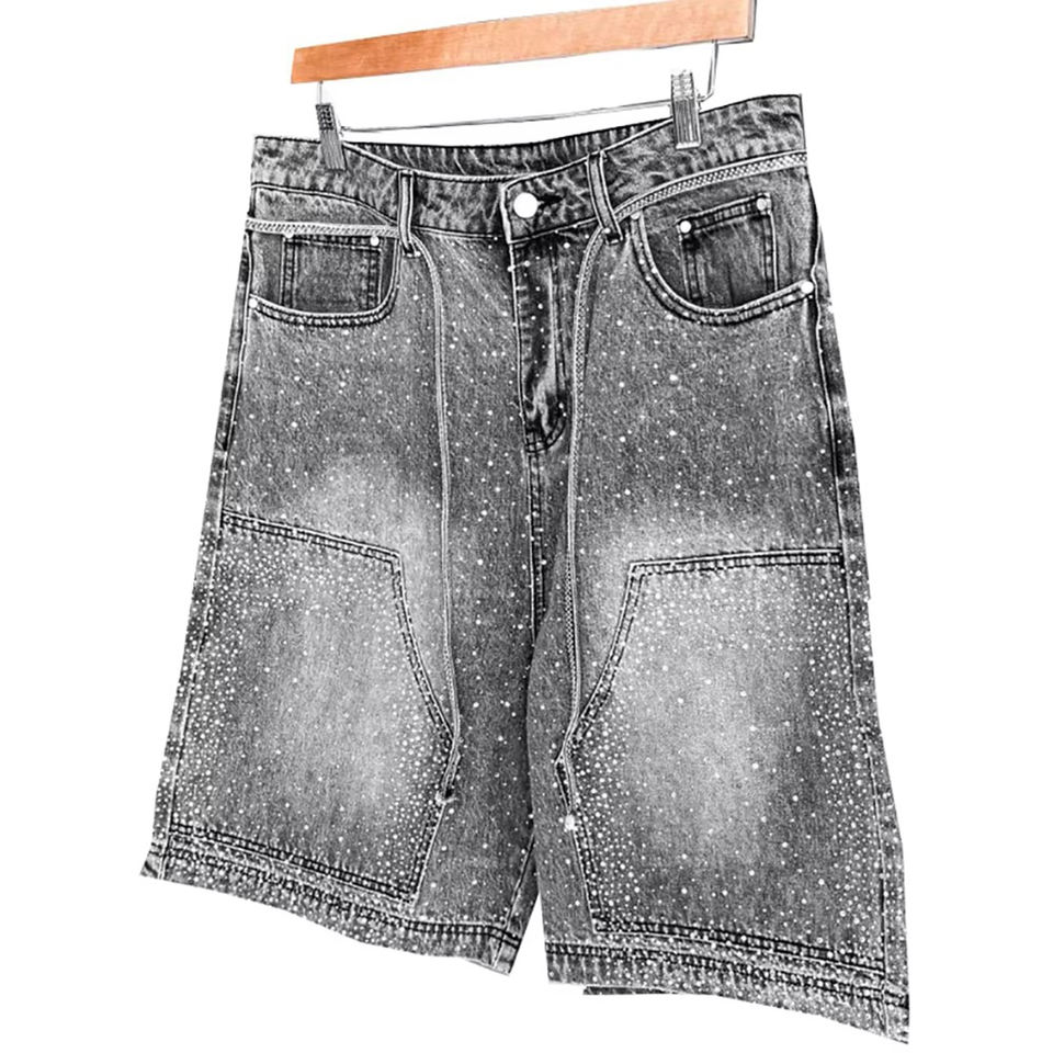 Product name:Custom Men Rhinestone Denim Shorts