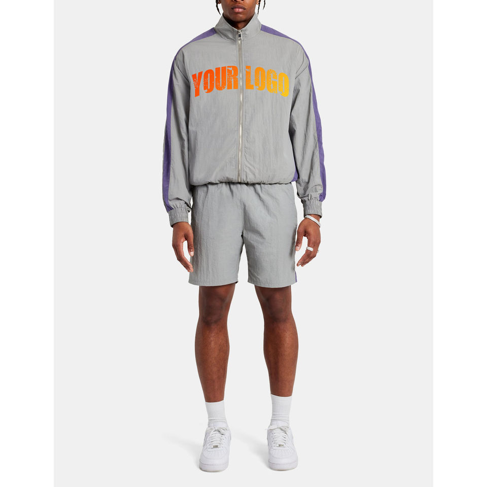 Custom Casual Windbreaker Color Block Nylon Sweatsuit Zip up Jacket Jogging Shorts Set Polyester Men 2 Piece