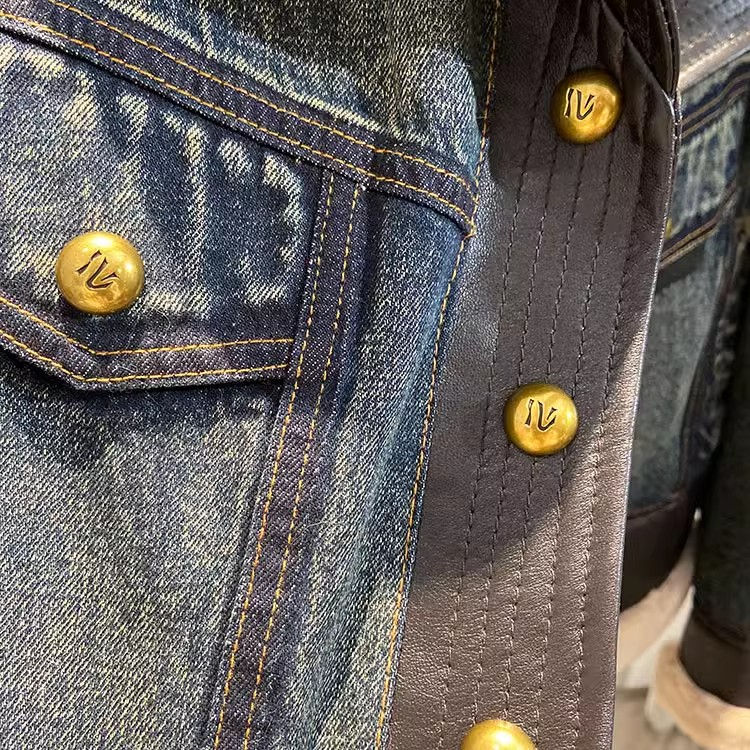 Custom Causal Down Inner Liner Denim Coat Winter Leather Collar Denim Jackets with Lamb Fur Women High Quality Jacket