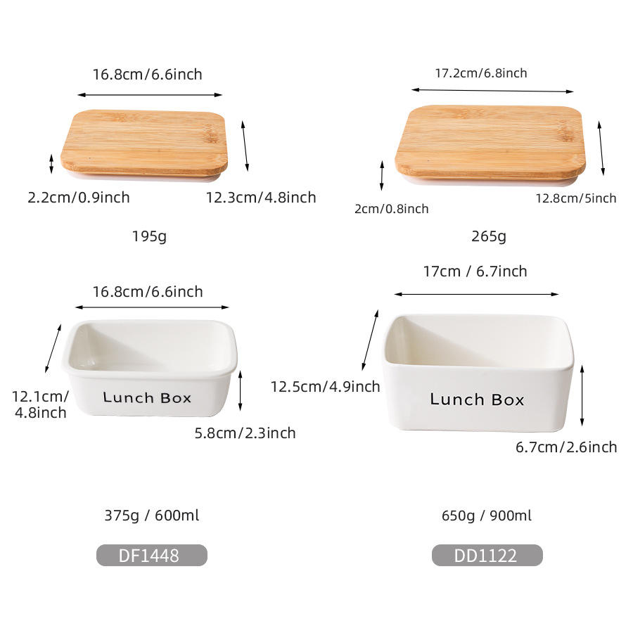 Custom Ceramic Lunch Box Square White With Wooden Lid For Food Storage Household Use