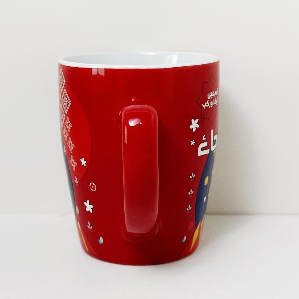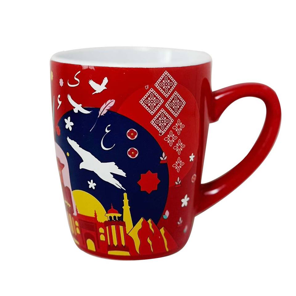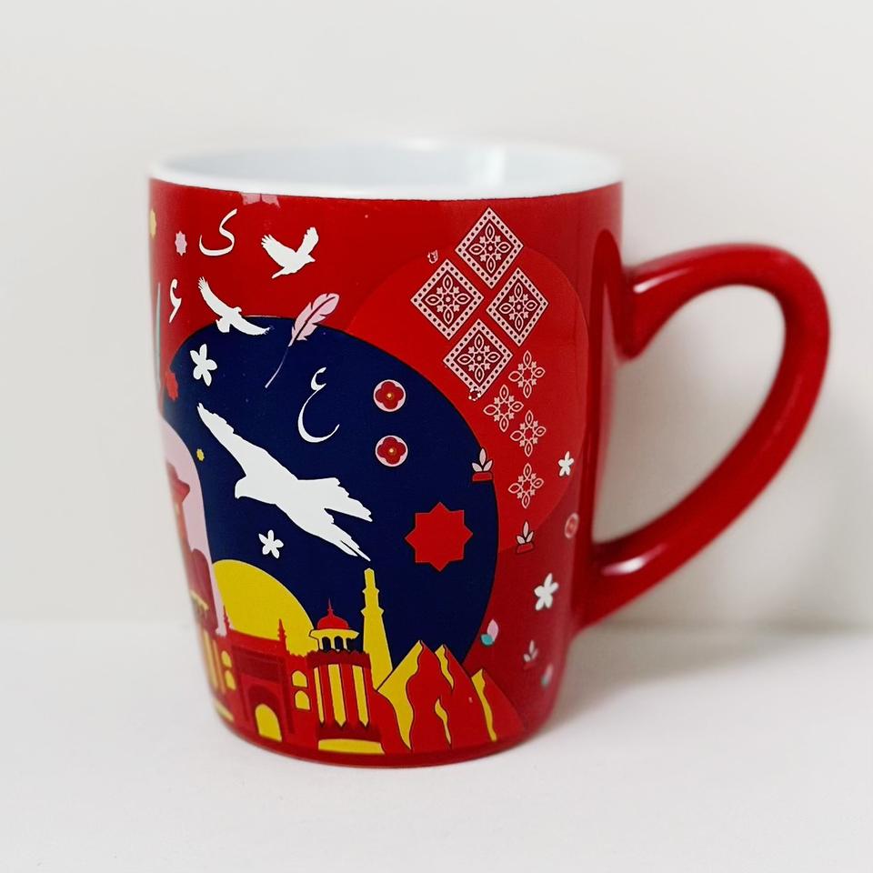 Custom Ceramic Mug Red With Islamic Design And Birds Pattern For Giveaways Single Cup