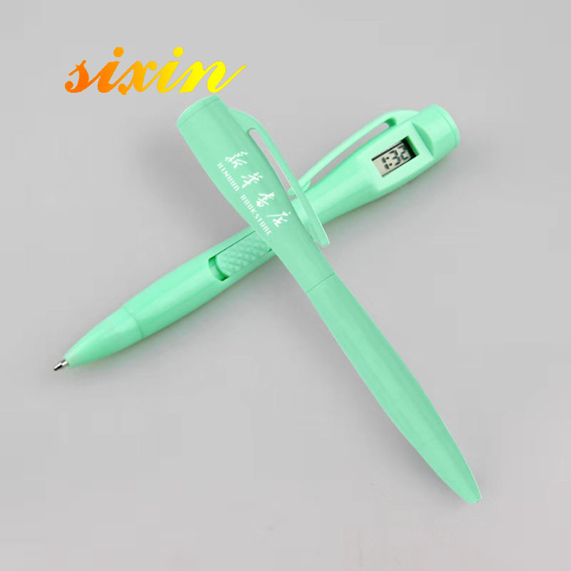 Custom Cheap Promotional Plastic Ball With Watch Digital Clock Pen
