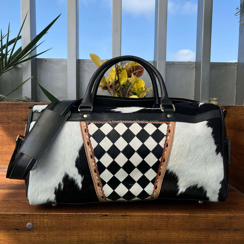 Product name:Checkered Pattern Cowhide Duffel Bag