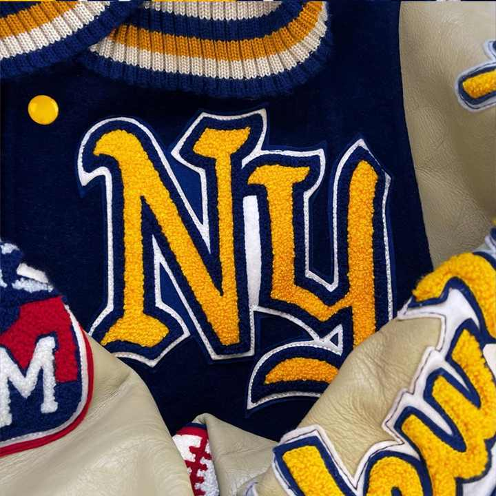 Custom Chenille Embroidery Patch Men's Oversized Bomber Jacket Canvas Stand Collar Front Logo