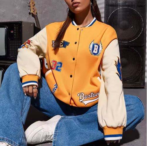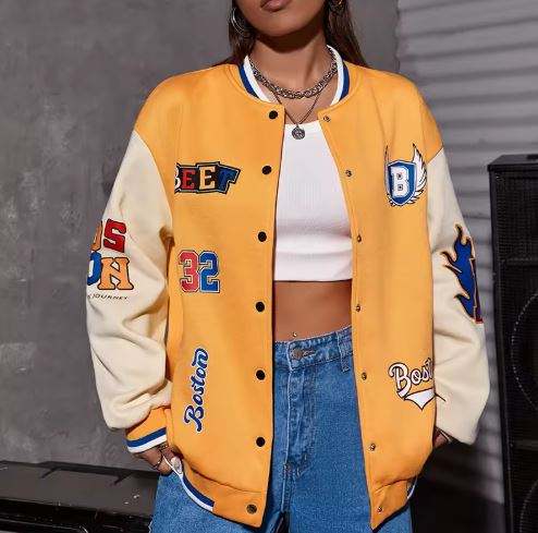 Custom Chenille Letter Graphic Drop Shoulder Two Tone Women's Varsity Jacket Letterman Baseball College Jackets