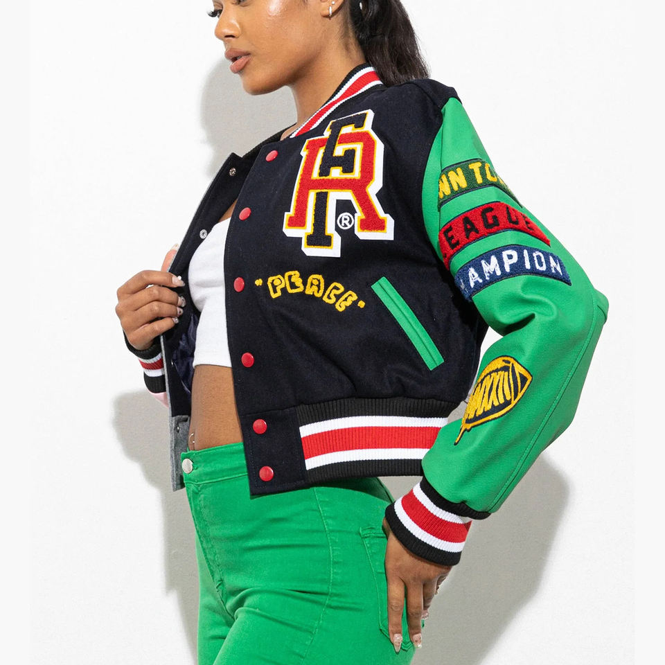 Product name:Women Crop Varsity Jacket