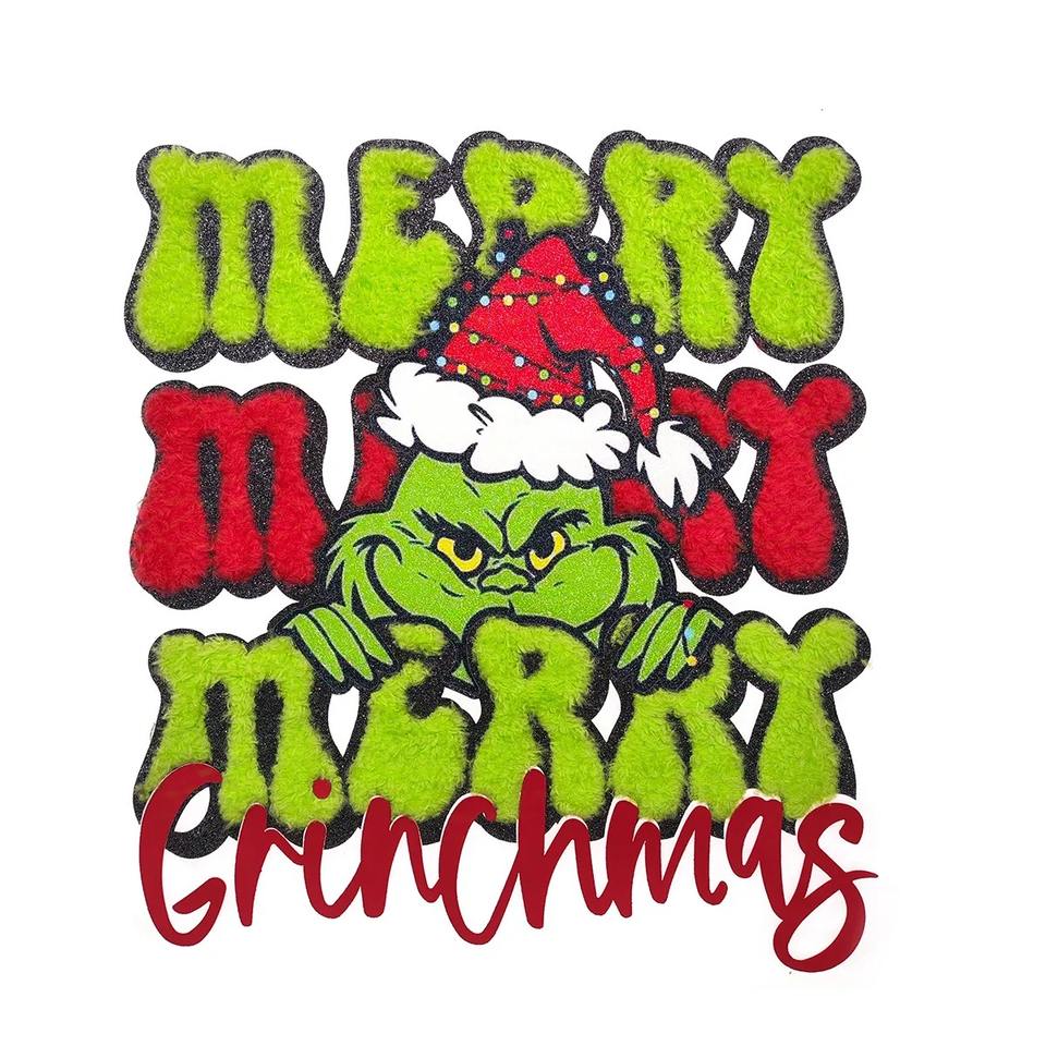 Custom Chenille Patches Christmas Bulk Iron-on Self-Adhesive Sequin Patches Heart-shaped Twill Fabric Hat Embroidered PVC Sew-on