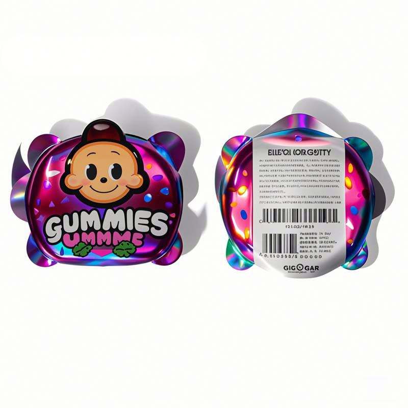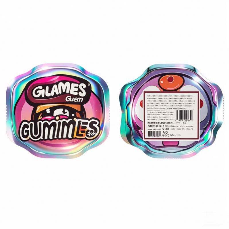 Custom Child-Resistant Smell-Proof Holographic Ziplock Mylar Bags Edible Laser Dye Cut for Chewing Gum & Jelly