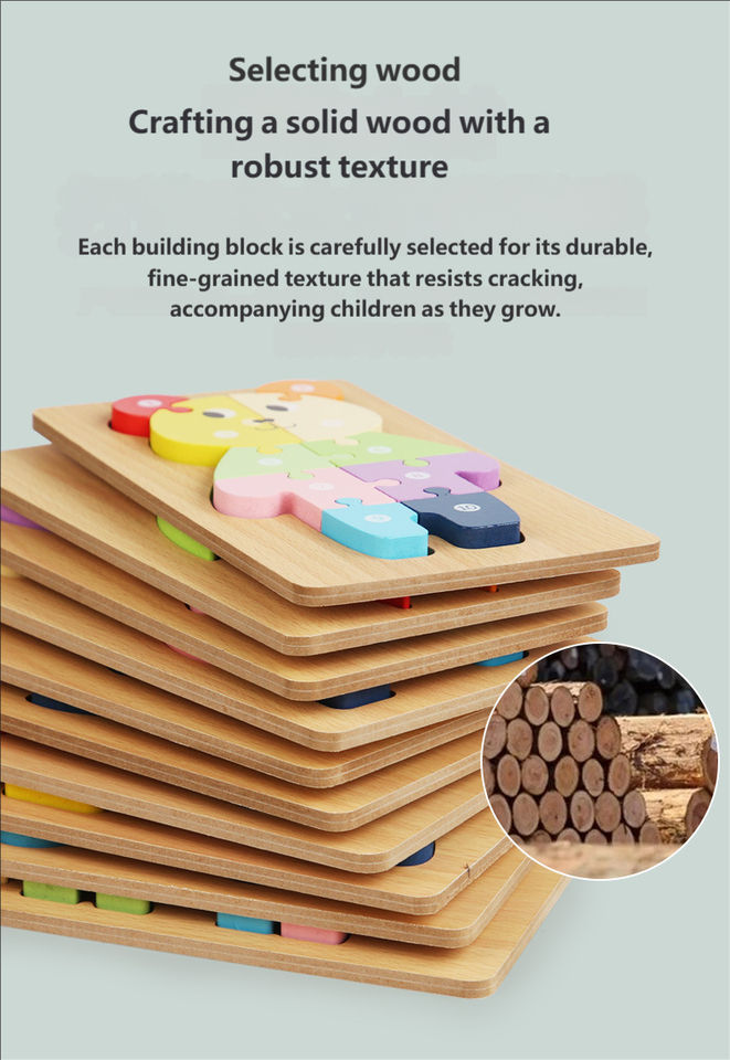 Custom Children Montessori Cartoon 3D DIY Jigsaw Puzzle Board Game Wooden Educational Matching Learning Toys for Kids Boys Girls