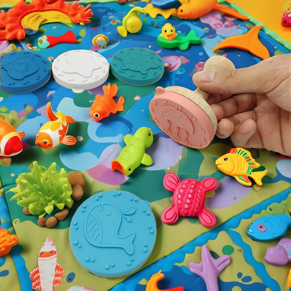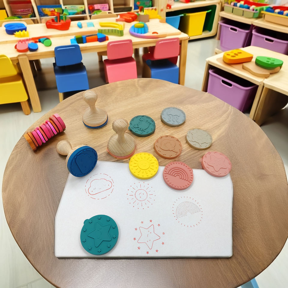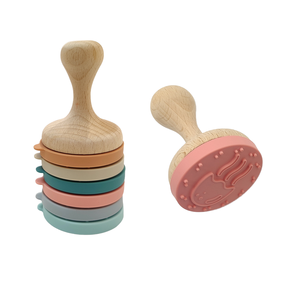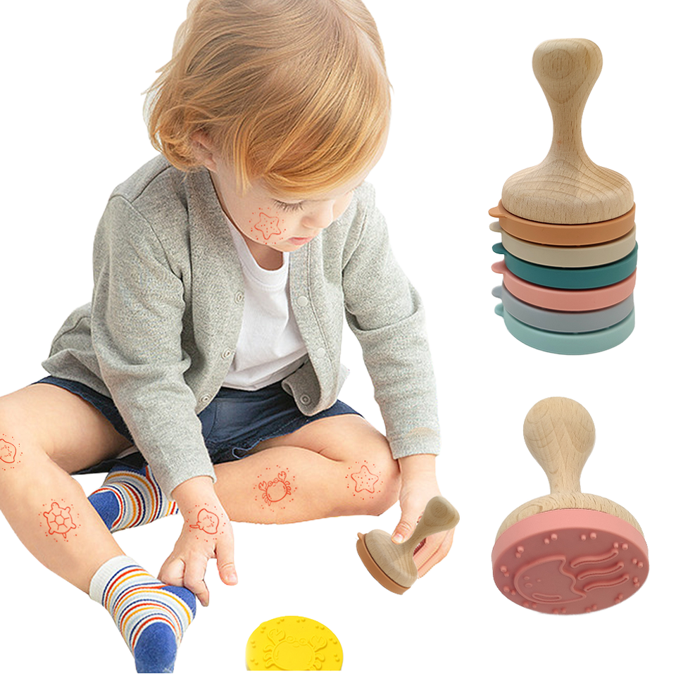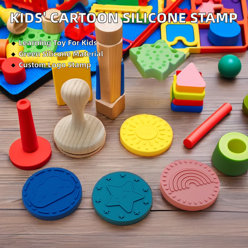 Custom Children's Wooden Silicone Stamp with Environmental Cartoon Handle Unisex Toy for Kids Aged 2 to 7 Years