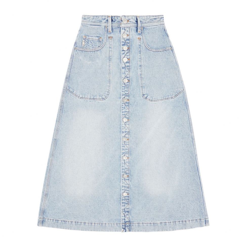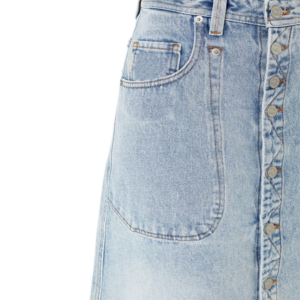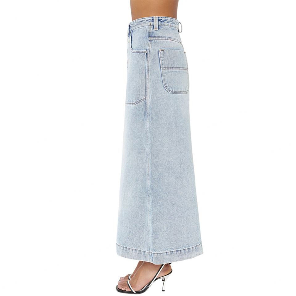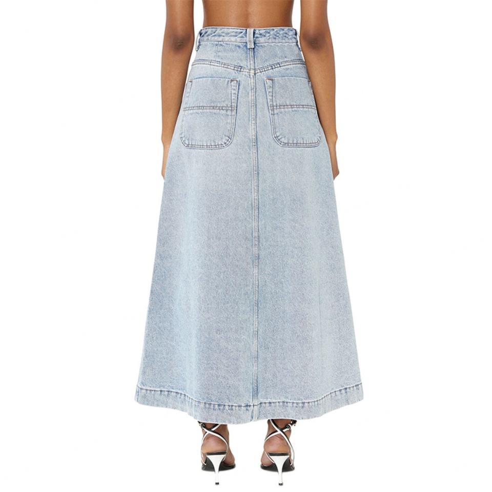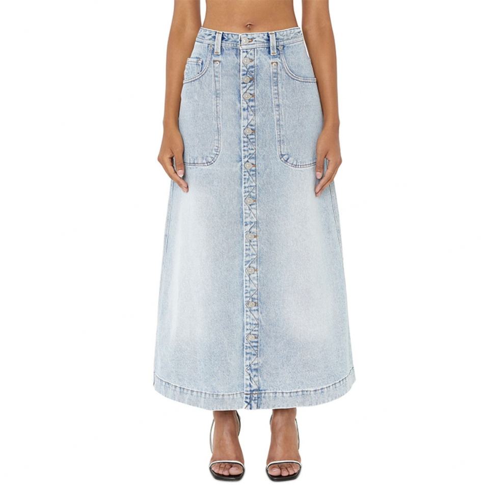 Custom China Factory Wholesale Light Blue High Waist Full Button Fly A-line Women Denim Long Skirt Work Wear Lady Dress for Girl