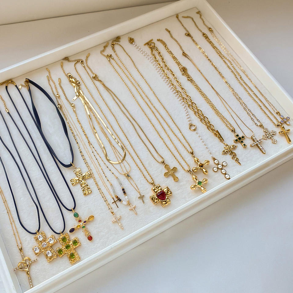 Custom Christian Jewelry 18k PVD Gold Plated Stainless Steel Waterproof Non Tarnish Cross Pendant Necklace Women
