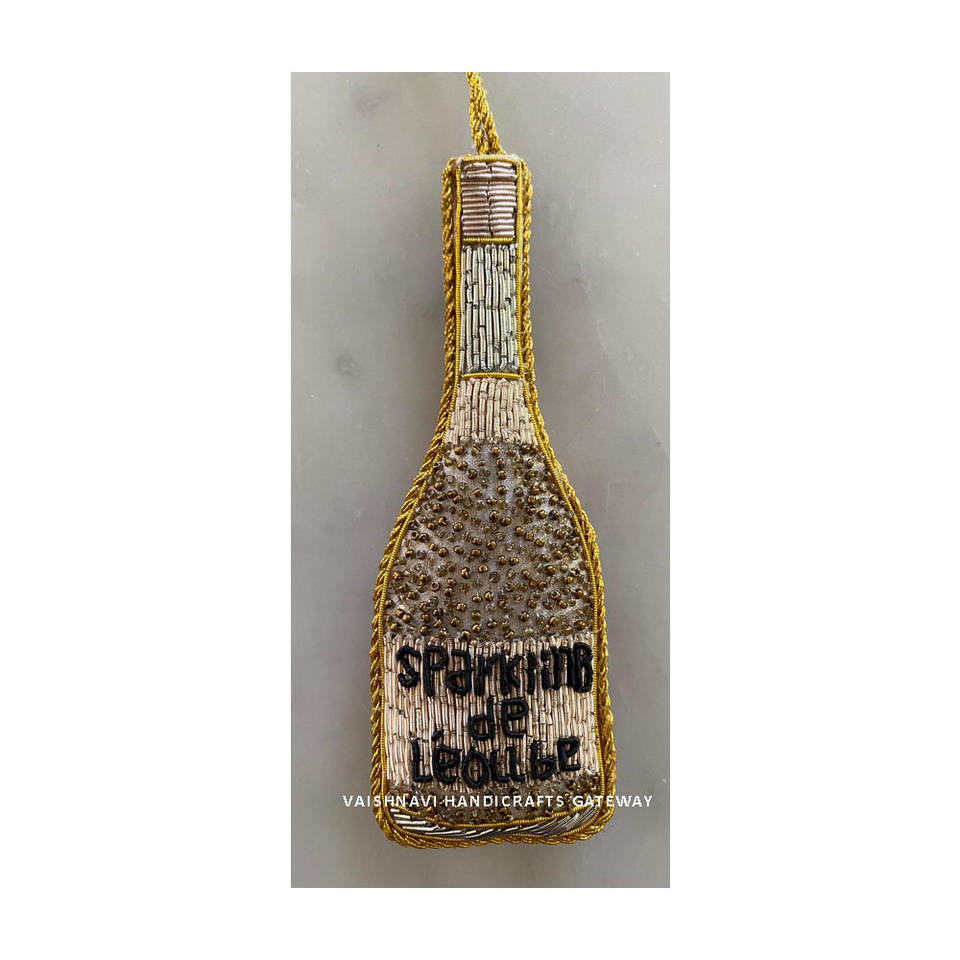 Custom Christmas Hanging Bottle Shape Ornaments Hand Embroidery and Beaded Work Festive Antique Home & Party Decor