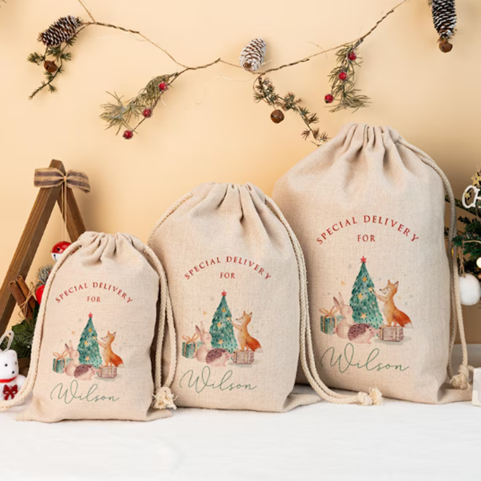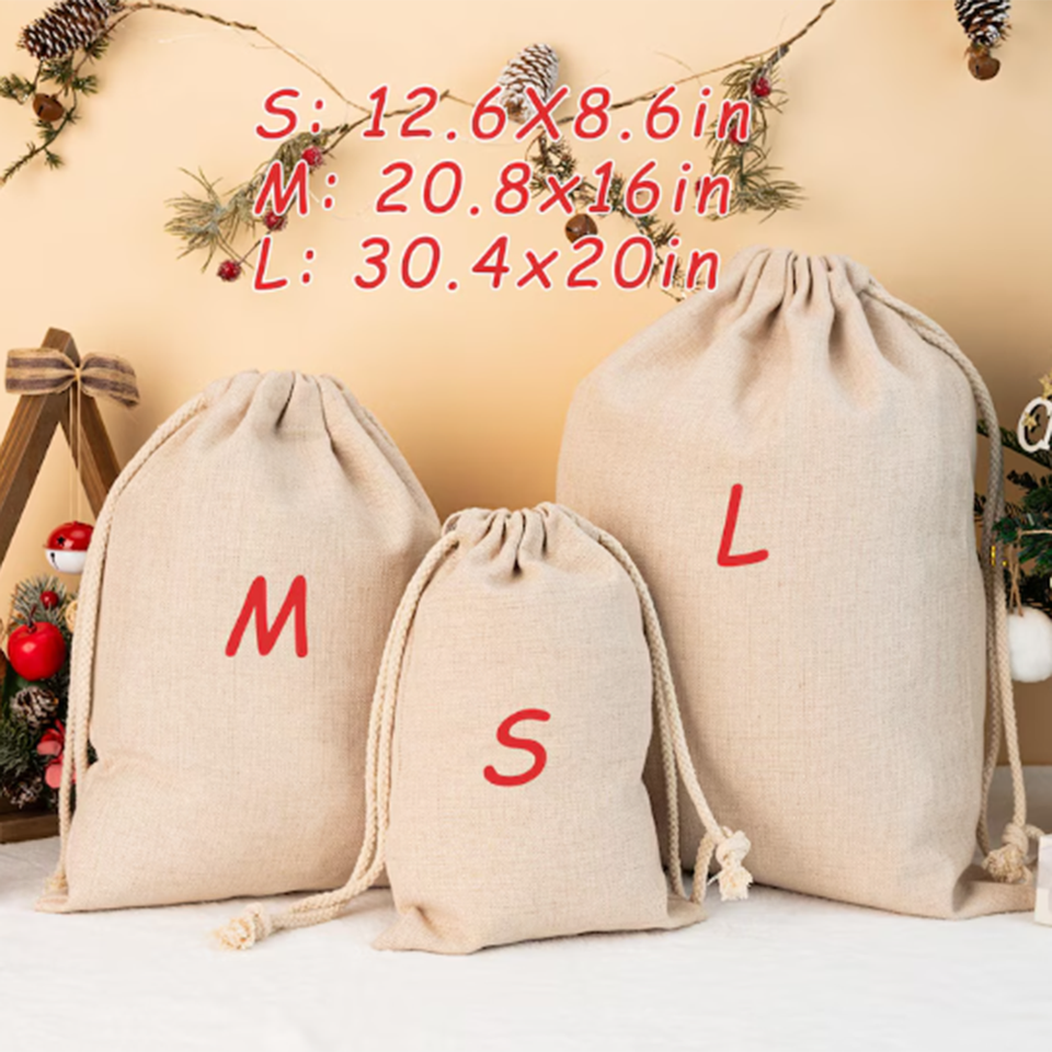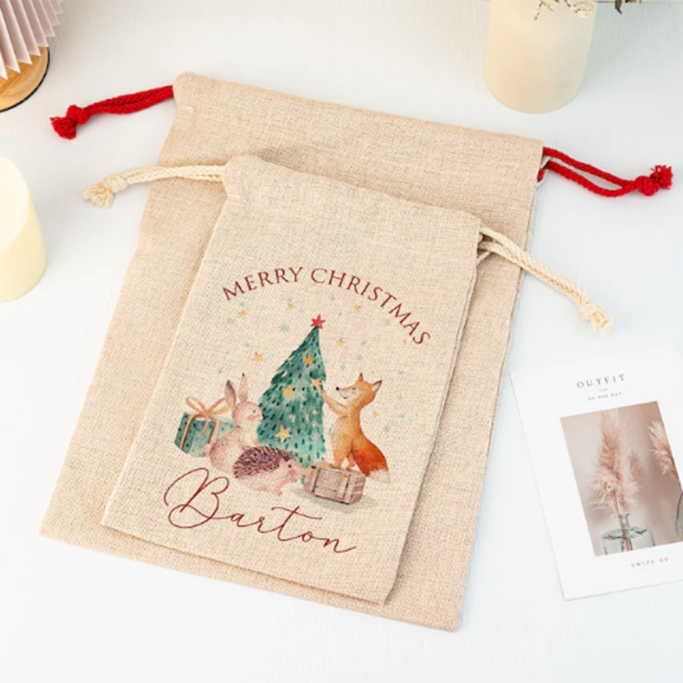 Custom Christmas Kids Gift Bag Personalized Santa Sack Family Holiday Party Cotton Linen Drawstring Sacks Burlap Style