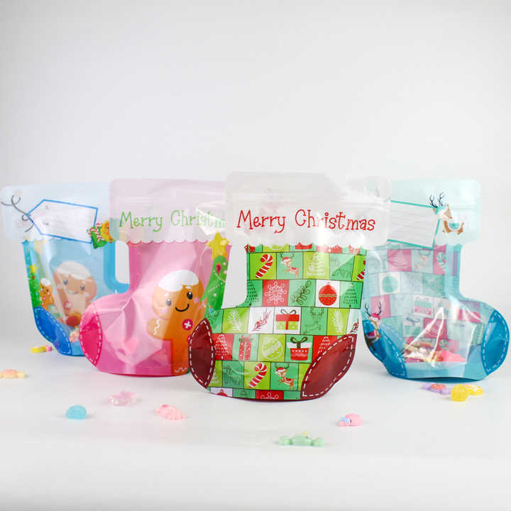 Custom Christmas 3.5g Mylar Ziplock Pouches for Chewing Gum & Milk Moisture Proof Food Packaging Bags