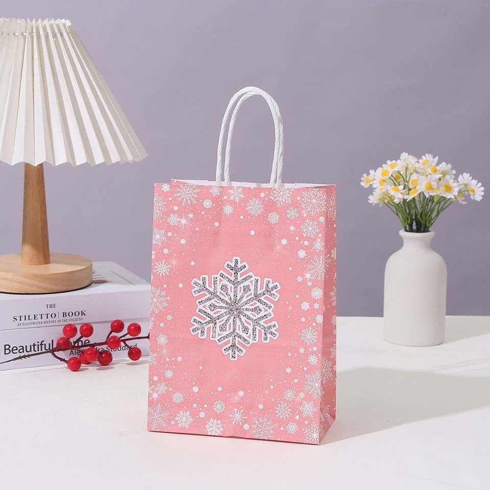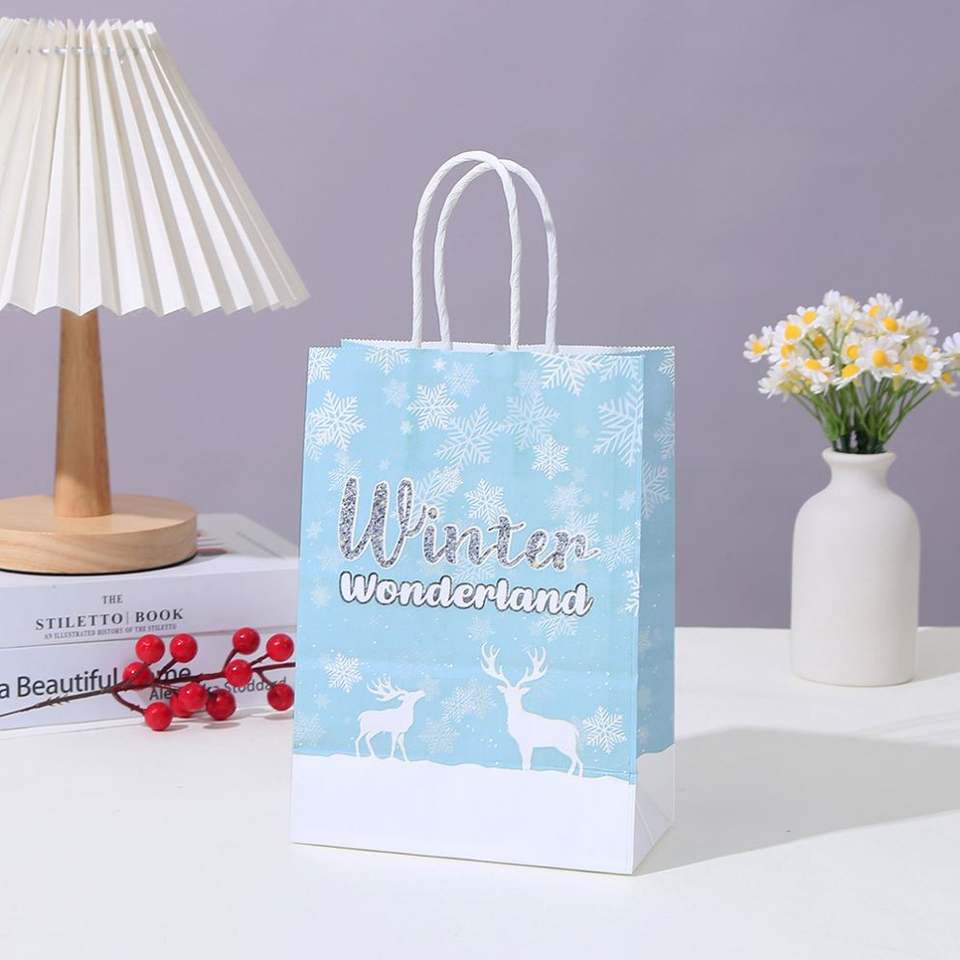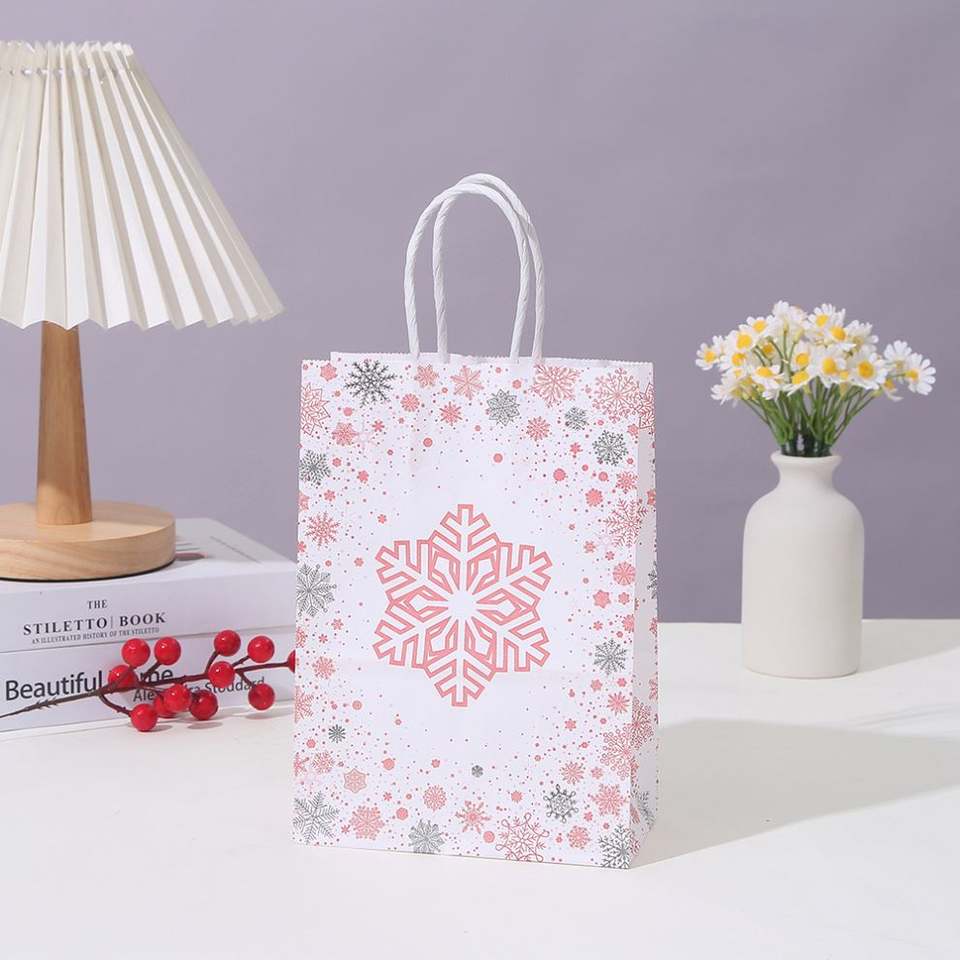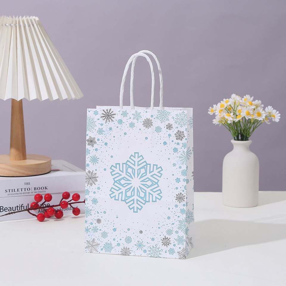 Custom Christmas Paper Gift Bag Luxury Shopping Design with Winter Snowflakes Personalized and Elegant